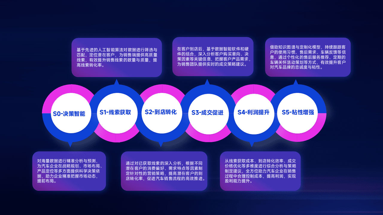 通过拓宽潜在客户来源、、、、优化线索分配并提高到店转化率,,,以增强销售效率。。。。同时,,,利用线索数据不断优化分析模型,,,,有效提升转化率,,扩大营销影响力。。。